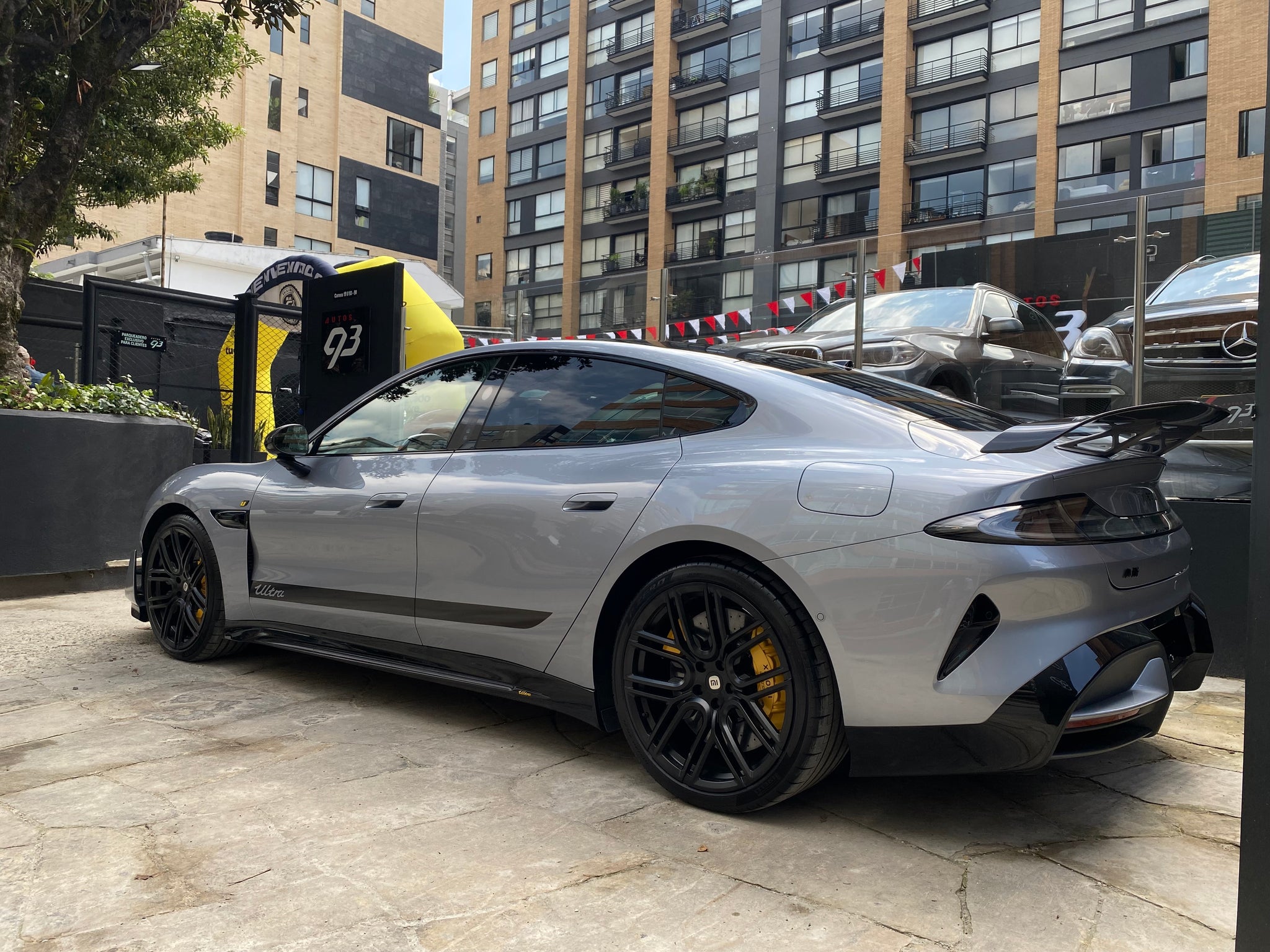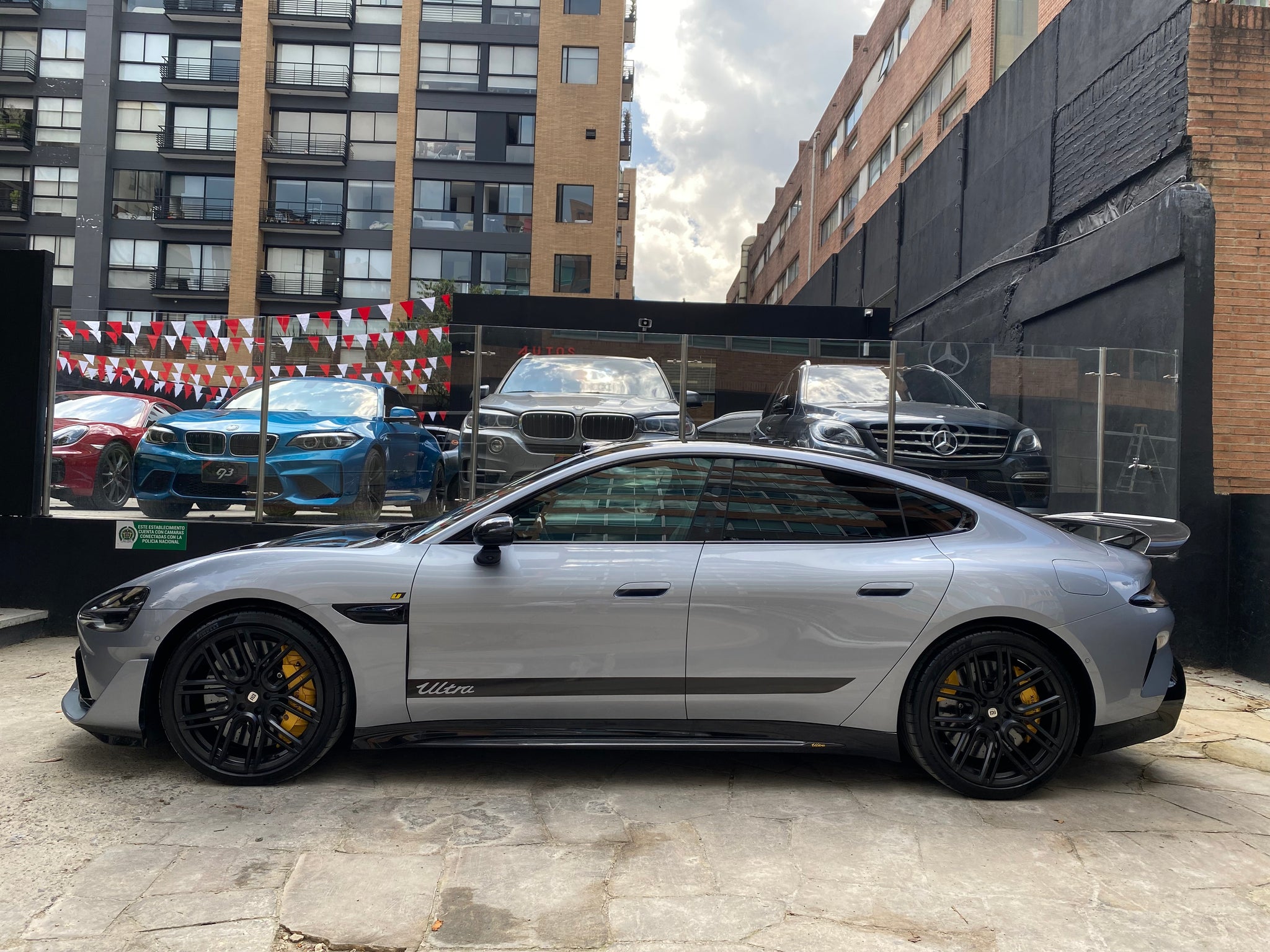 Su carrocería sedán de cinco puertas (4 puertas + portón) con perfil deportivo, líneas aerodinámicas, techo panorámico, acabados en fibra de carbono y detalles de lujo