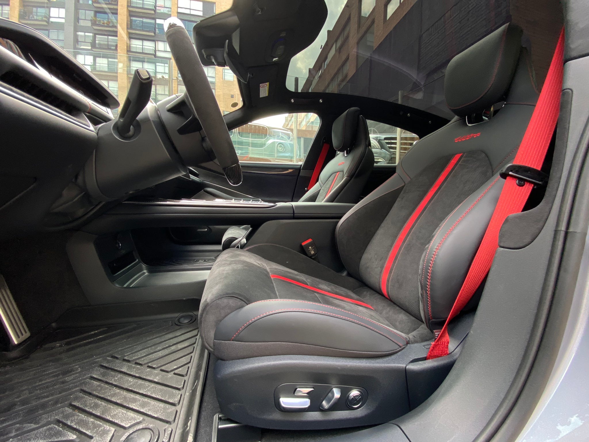 Su interior cuenta con una tapicería en cuero premium color negro y rojo